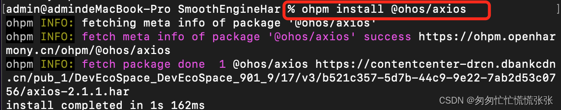 安装成功后,查看项目的package。1、已安装ohpm,可参考上一篇。2、回到项目的根目录执行。