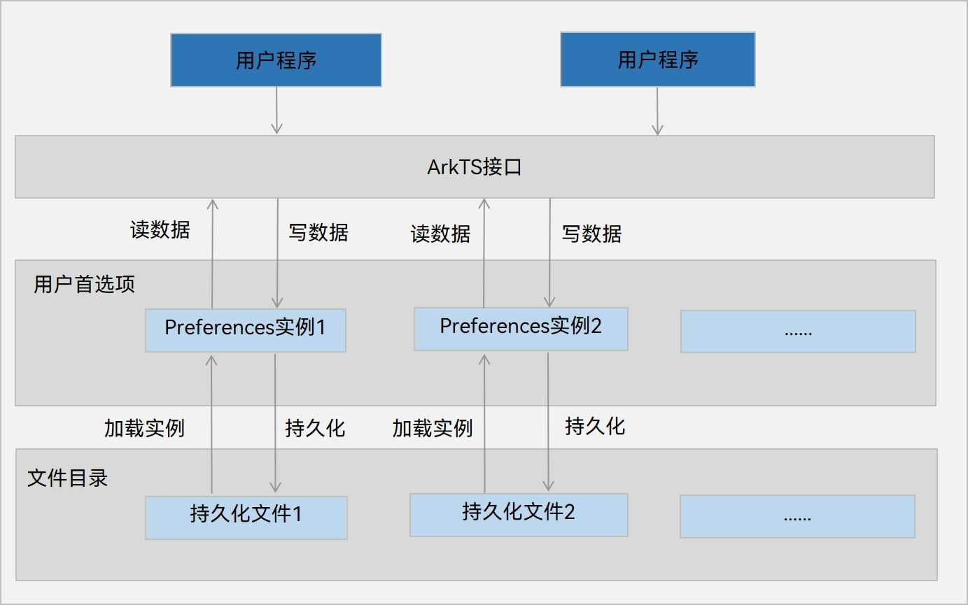 用户首选项为应用提供Key-Value键值型的数据处理能力,支持应用持久化轻量级数据,并对其修改和查询。当用户希望有一个全局唯一存储的地方,可以采用用户首选项来进行存储。Preferences会将该数据缓存在内存中,当用户读取的时候,能够快速从内存中获取数据,当需要持久化时可以使用flush接口将内存中的数据写入持久化文件中。