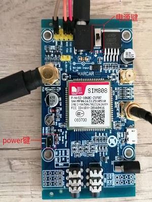 在小熊派开发板和SIM808模块都连接上电源后,先按小熊派复位按钮,启动小熊派开发板。然后再按SIM808模块的电源波动开关,然后按SIM808模块的POWER按键3秒以上。具体如下: