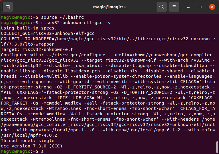 tar -xvf gcc_riscv32-linux-7.3.0.tar.gz -C ~