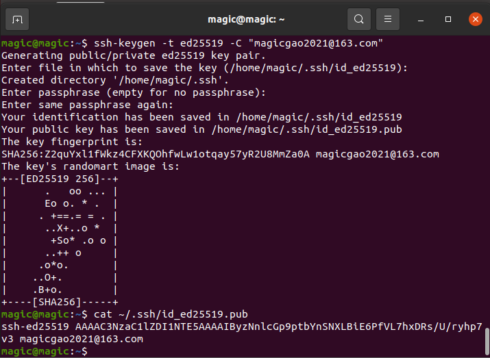 ssh-keygen -t ed25519 -C "xxxxx@xxxxx.com"