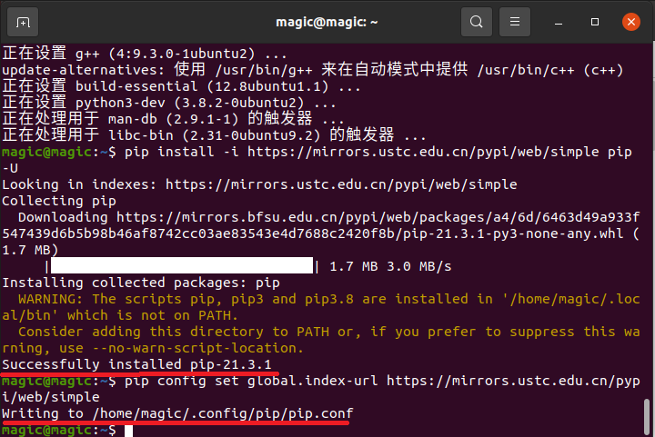 pip config set global.index-url https://mirrors.ustc.edu.cn/pypi/web/simple