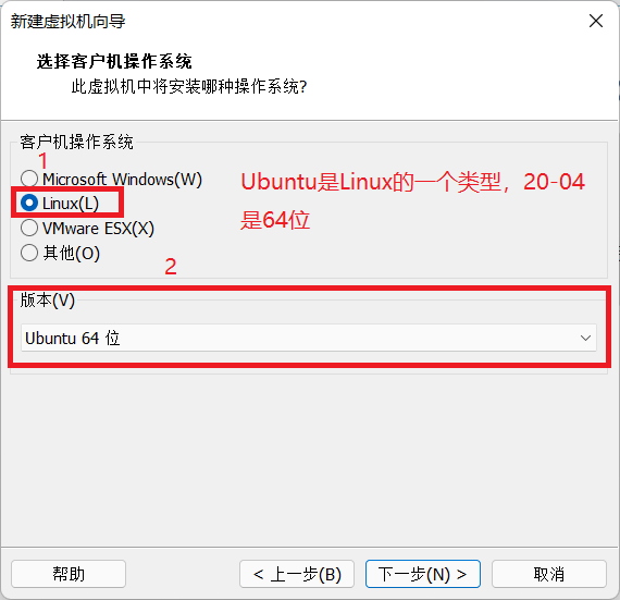 3.客户端操作系统选择Linux,版本选择Ubuntu 64位,然后点击下一步