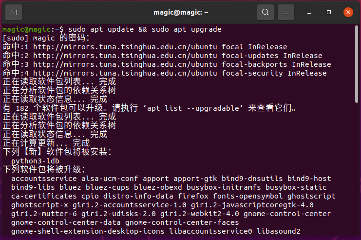 4.换源之后进行配置更新,按快捷键:Ctrl+Alt+T打开终端,输入命令: