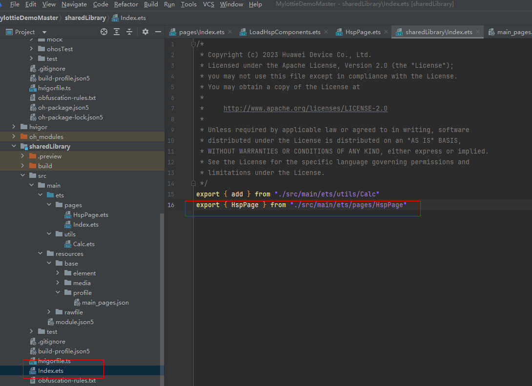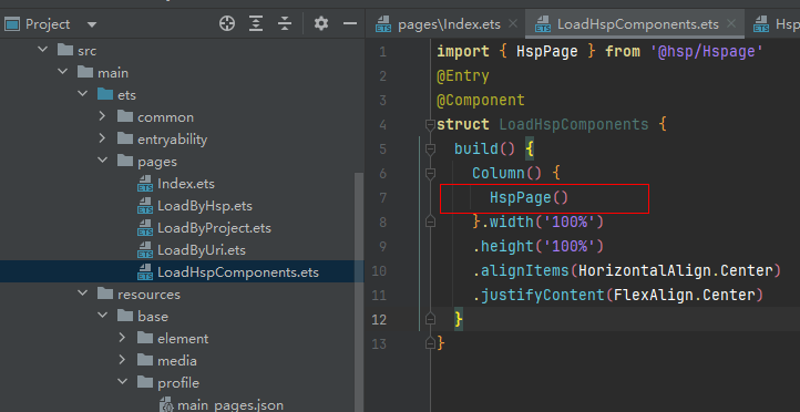 2.在HspPage组件内,struct结构体前使用export关键字。