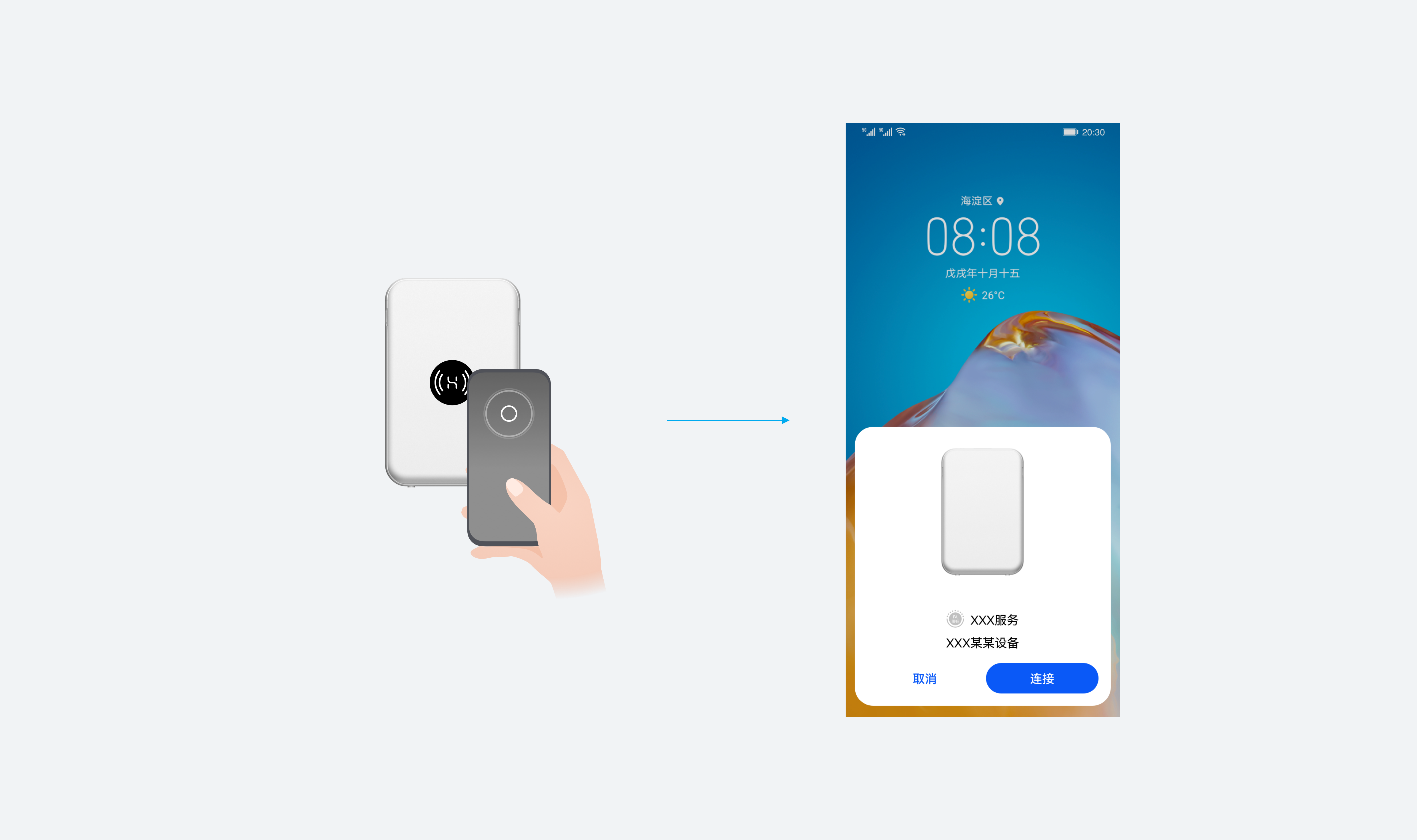 “碰一碰”连接支持无源NFC设备或蓝牙设备。当用户首次“碰一碰”设备时,会触发连接流程,系统会通过系统弹框引导用户连接设备。