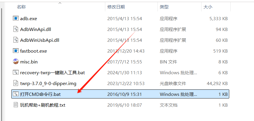 运行recovery-twrp一键刷入工具.bat刷写工具