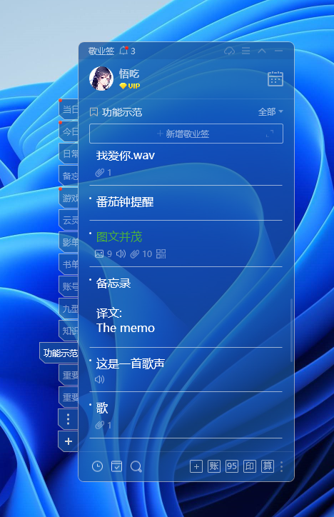 为了在使用电脑的时候有更流畅的体验,不少职场人士将自己电脑系统升到了Win11。在Win11系统里,适合在电脑桌面使用的小工具有哪些呢?职场办公型便签敬业签就不错。敬业签可以在任意版本的Windows系统中使用,win7、win8、win10、win11都可以下载敬业签使用。