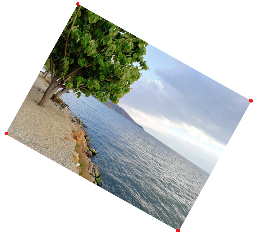 如上图中的红点所示,文档检测接口返回了图中相片文档四个顶点相对图像左上角的坐标信息。文档检测结果如下: