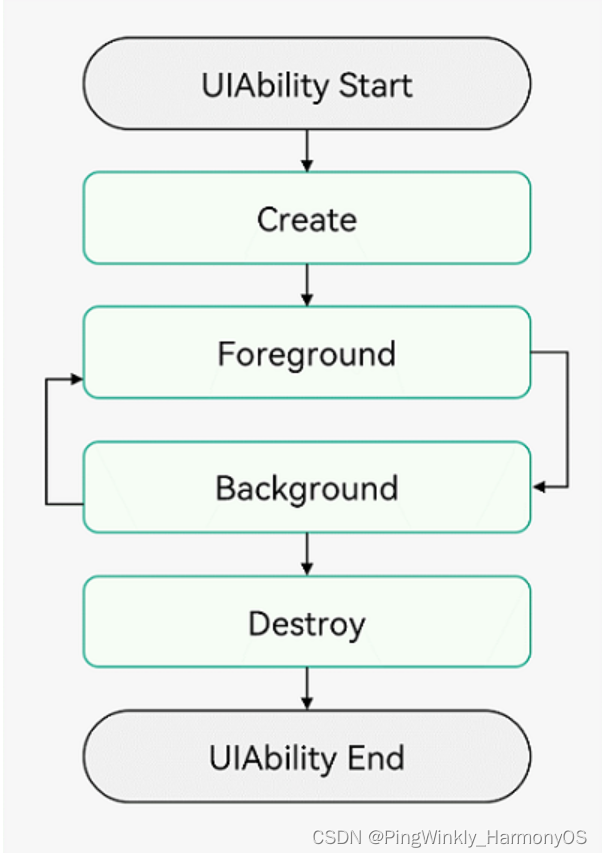 UIAbility的生命周期包括Create、Foreground、Background、Destroy四个状态,如下图所示