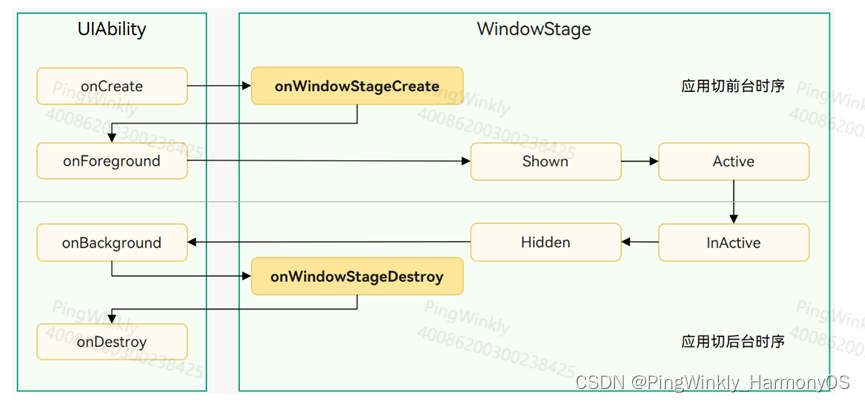 Foreground和Background状态分别在UIAbility实例切换至前台和切换至后台时触发,对应于onForeground()回调和onBackground()回调。