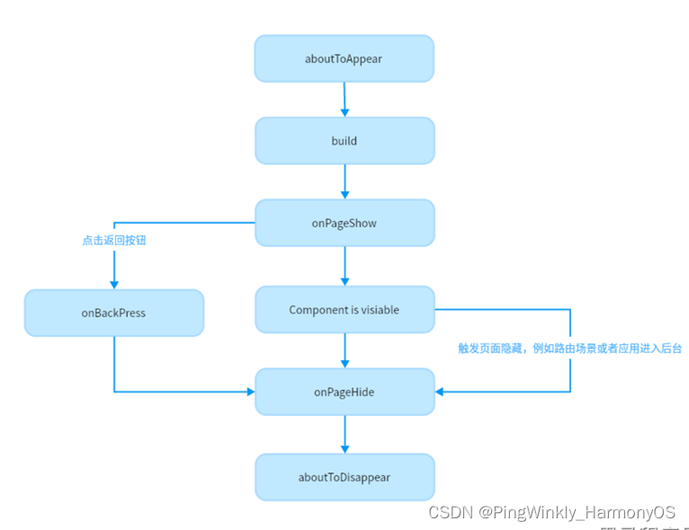 页面每次隐藏时触发一次,包括路由过程、应用进入后台等场景,仅@Entry装饰的自定义组件生效。
