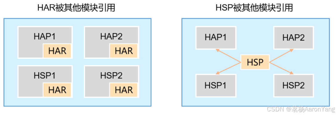 HAR引用会被拷贝,重复拷贝到各个模块去,HSP不会