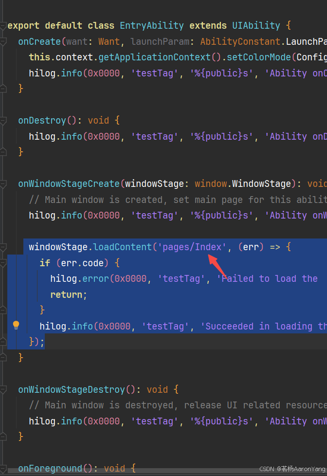 hilog.info(0x0000, 'testTag', '%{public}s', 'Ability onWindowStageCreate');
