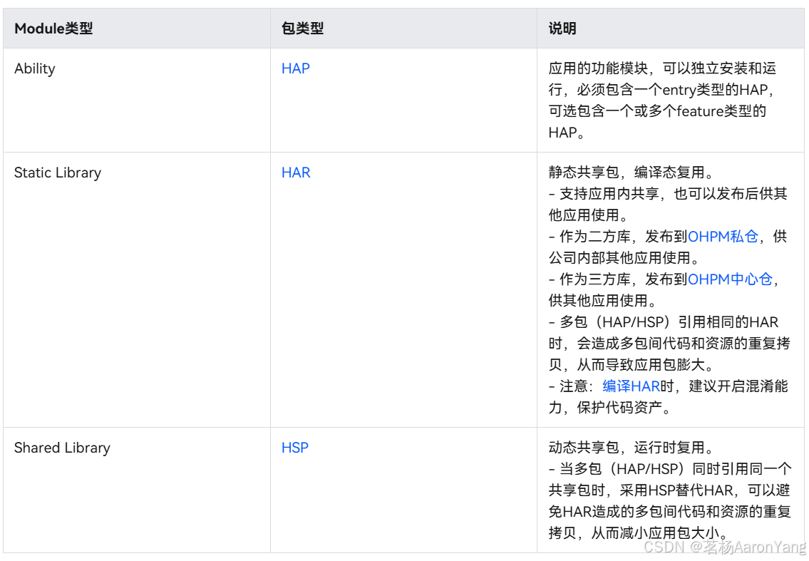 HAP包可以独立安装和运行,是应用安装的基本单位,一个应用中可以包含一个或多个HAP包,具体包含如下两种类型。我理解就是从大到小,还有通过各种配置,完成1个项目的开发,重点了解UIAbility声明周期,类似安卓的窗口的生命周期,类似wpf的MVVM,这里一句话讲不完,后面实战自己领悟,目前知道就行。每个应用中至少包含一个.hap文件,可能包含若干个.hsp文件、也可能不含,一个应用中的所有.ha