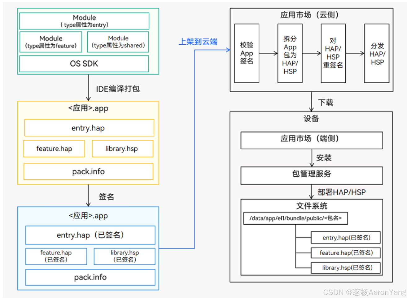 - 在应用签名、云端分发、端侧安装时,都是以HAP/HSP为单位进行签名、分发和安装的。