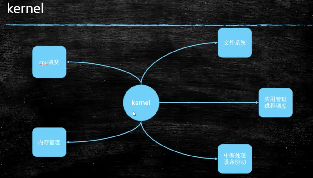操作系统内核kernel,主要控制的计算机的正常运行,包括:文件管理(文件系统)、进程管理(CPU调度)、内存管理、中断处理和应用程序的切换调度。这些功能都是独立成单独的模块,除了这些功能模块,内核kernel本身除了在“恰当的时候”负责调度、连接这些模块之外,它自己也有重要的功能,如控制计算机的启动bootLoader。