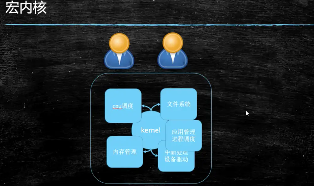 目前市面上、绝大多数操作系统都是宏内核。宏内核的操作系统,典型代表就是Linux。