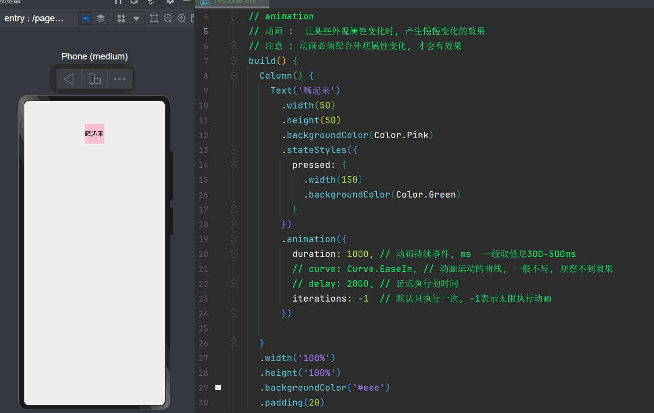 // 注意 : 动画必须配合外观属性变化, 才会有效果