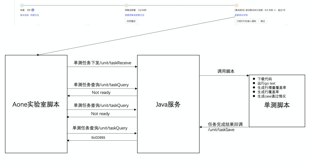 高德打车运营的应用大多基于 Go 开发的,他们希望在预集成环境下,当研发部署完代码,能自动触发单元测试和接口自动化测试,并生成覆盖率报告。