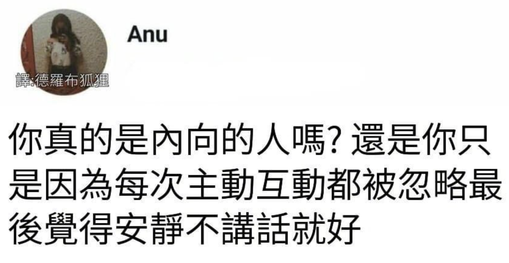 - 内向者会说很多“抱歉”或是“不好意思”,即使ta们没有做错任何事。