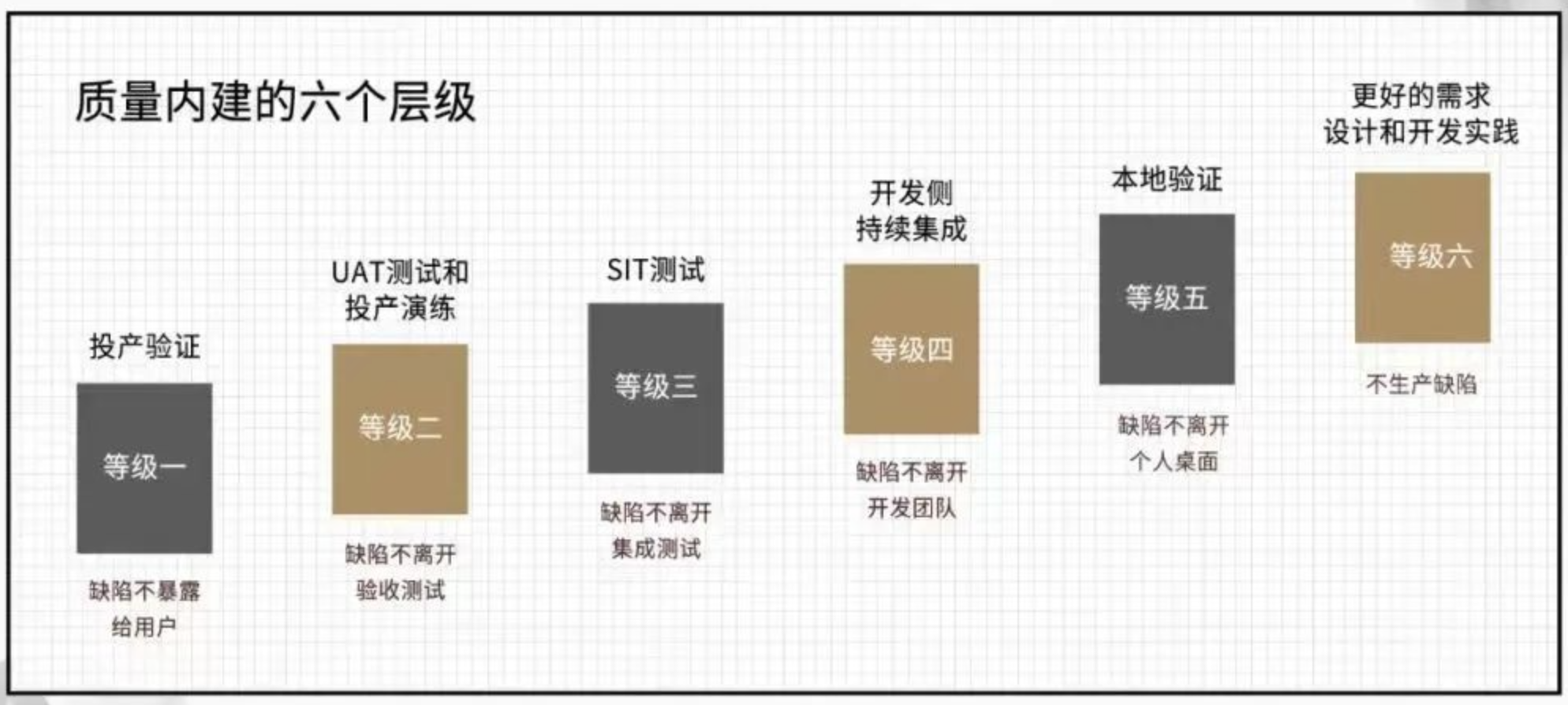 所以这个题目可以改为 “走向质量内建的六个层级”。