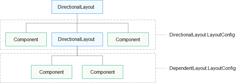 布局把Component和ComponentContainer以树状的层级结构进行组织,这样的一个布局就称为组件树。组件树的特点是仅有一个根组件,其他组件有且仅有一个父节点,组件之间的关系受到父节点的规则约束。