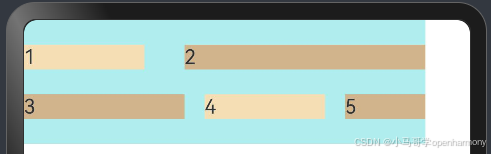 Text('5').width('20%').height(20).backgroundColor(0xD2B48C)