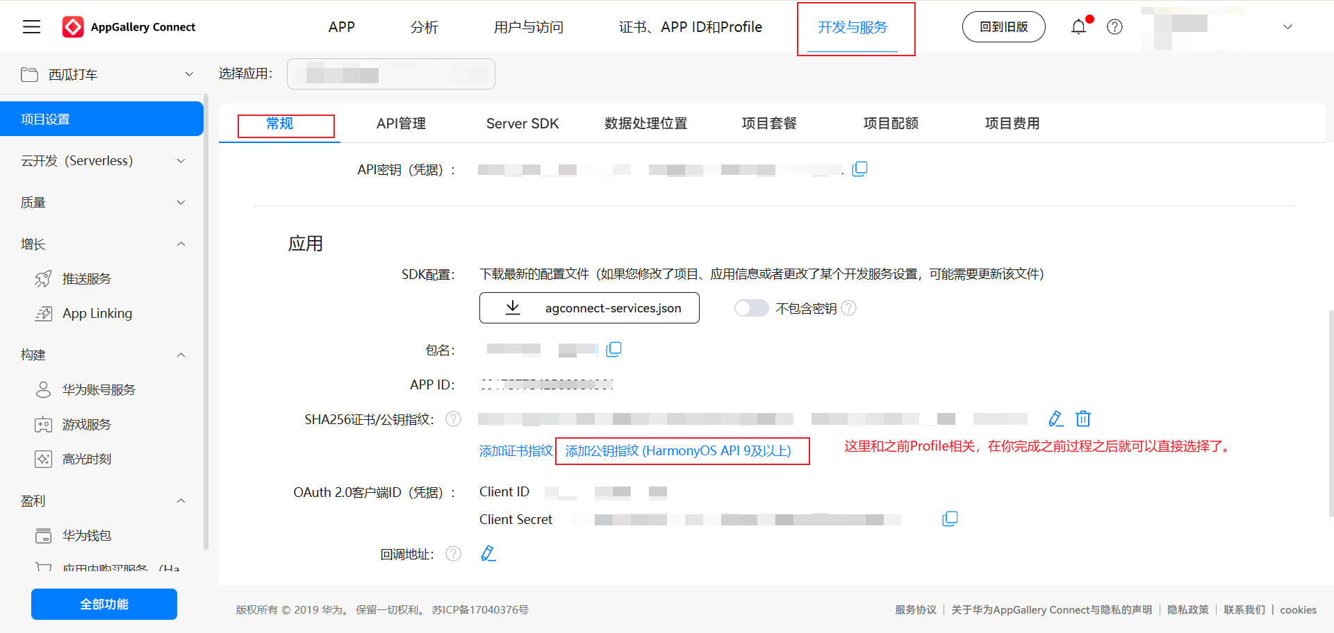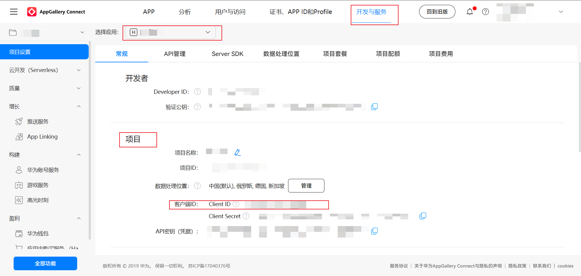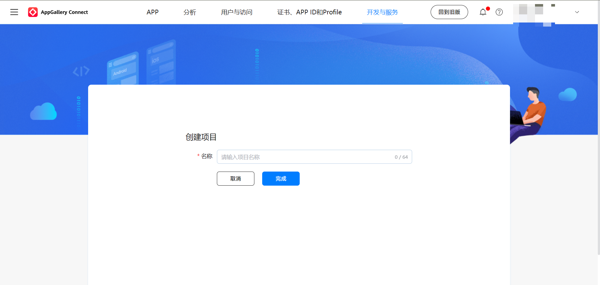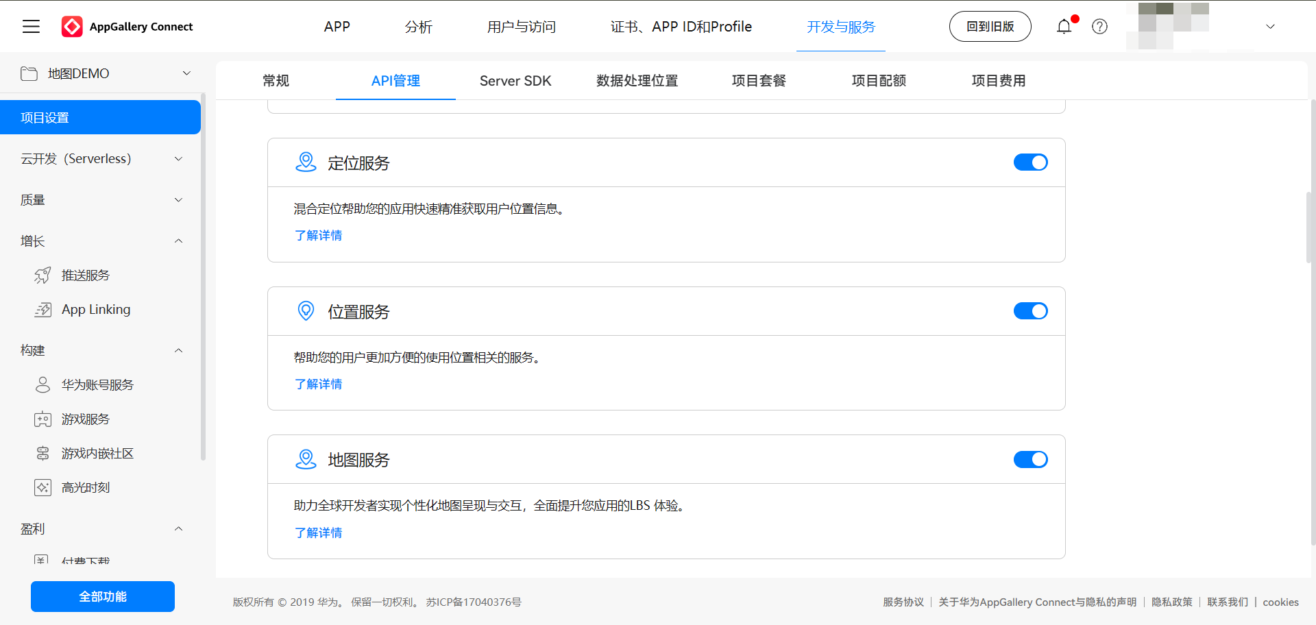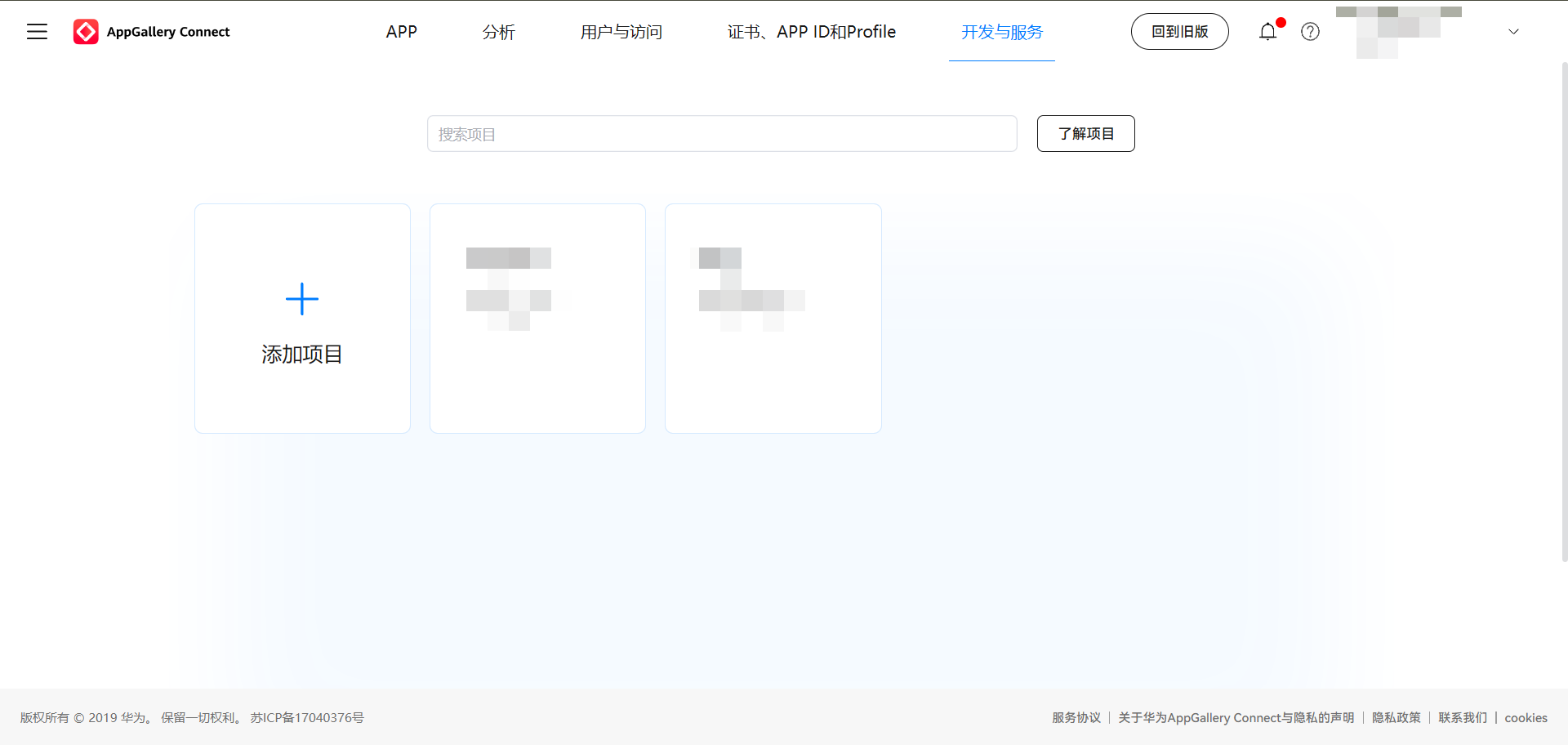 点击“开发与服务”,进入相关页面,并新建项目。开发与服务页面如下: