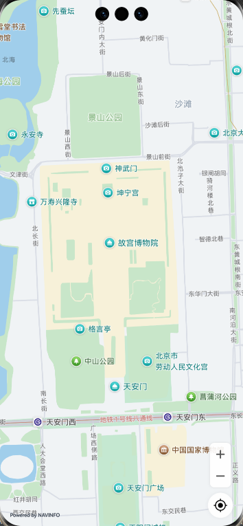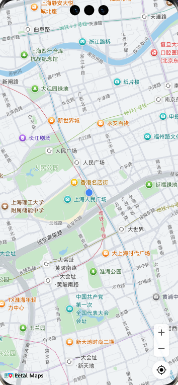此时,如果点击右下角定位图标或是初始打开应用,均会定位到你的设备的位置了。(图示为虚拟地址),并且,在第一次打开时还会邀你授权权限(似乎真机才有)。