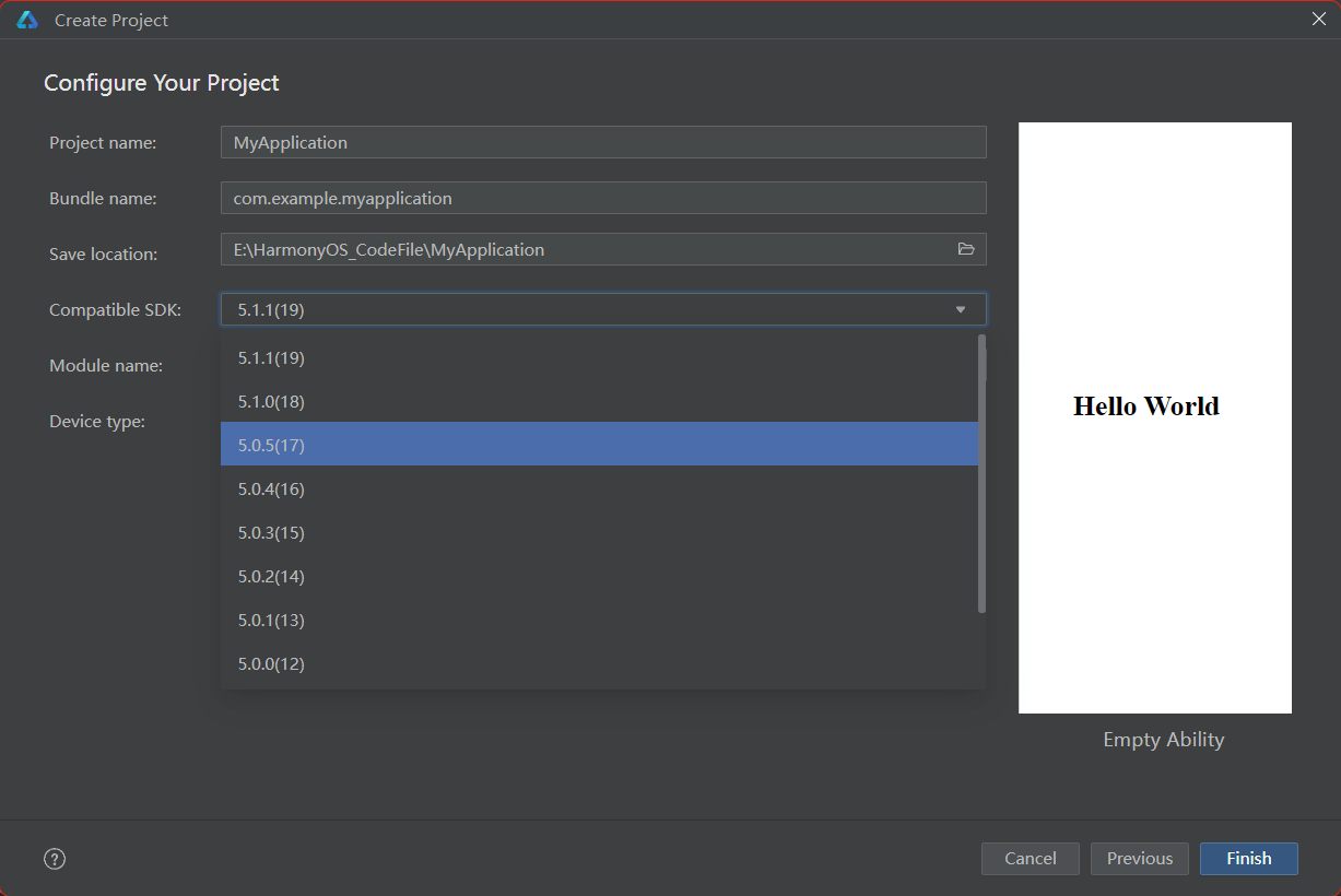 API选择12以上即可,包名可以使用默认或者自行配置。包名是安装在设备上的路径和标识,后续有需要,还请记住这个包名。