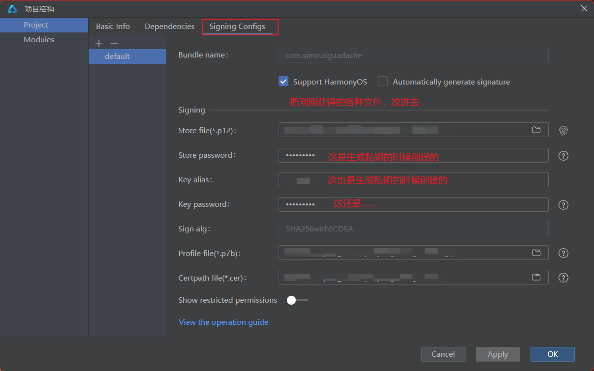 在完成了各种私钥和证书之后,我们需要将这些文件与开发项目绑定。
