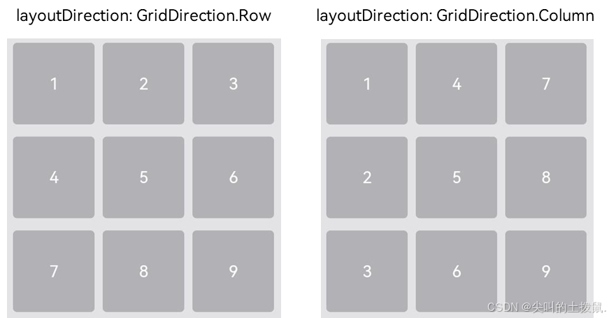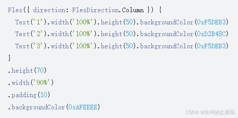 FlexDirection.Column:主轴为垂直方向,子元素从起始端沿着垂直方向开始排布