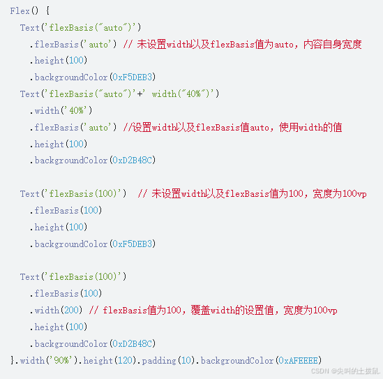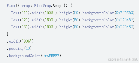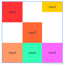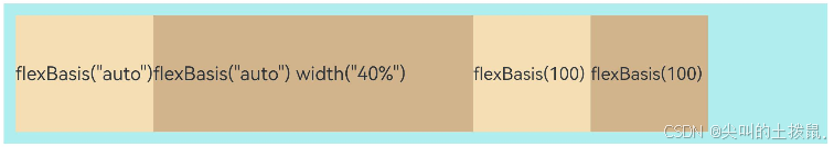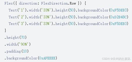 FlexDirection.Row(默认值):主轴为水平方向,子元素从起始端沿着水平方向开始排布。