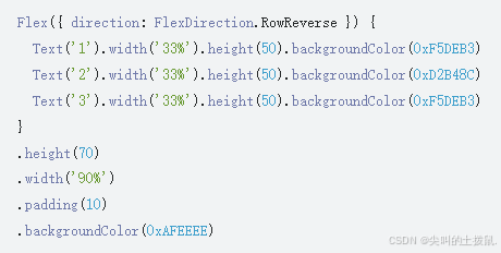 FlexDirection.RowReverse:主轴为水平方向,子元素从终点端沿着FlexDirection. Row相反的方向开始排布。