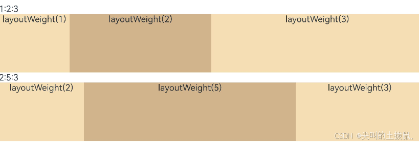 父容器尺寸确定时,使用layoutWeight属性设置子元素和兄弟元素在主轴上的权重,忽略元素本身尺寸设置,使它们在任意尺寸的设备下自适应占满剩余空间。