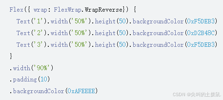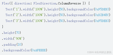 FlexDirection.ColumnReverse:主轴为垂直方向,子元素从终点端沿着FlexDirection. Column相反的方向开始排布。
