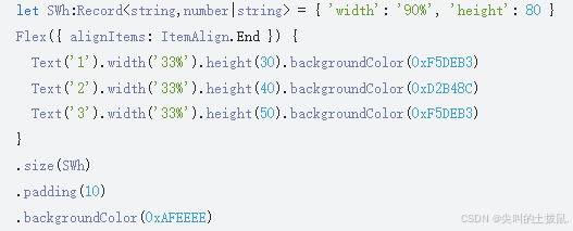 justifyContent(FlexAlign.SpaceAround):垂直方向均匀分配元素,相邻元素之间距离相同。第一个元素到行首的距离和最后一个元素到行尾的距离是相邻元素之间距离的一半。