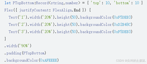 justifyContent(FlexAlign.End):元素在水平方向尾部对齐,最后一个元素与行尾对齐,其他元素与后一个对齐。