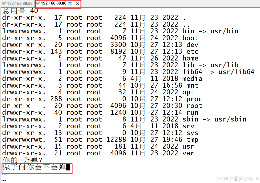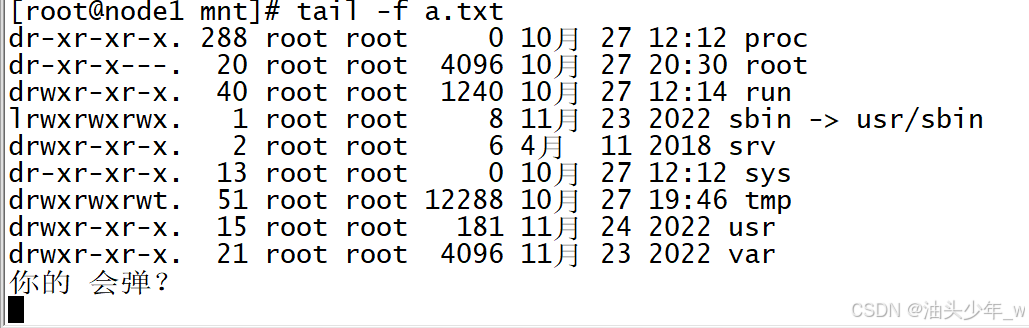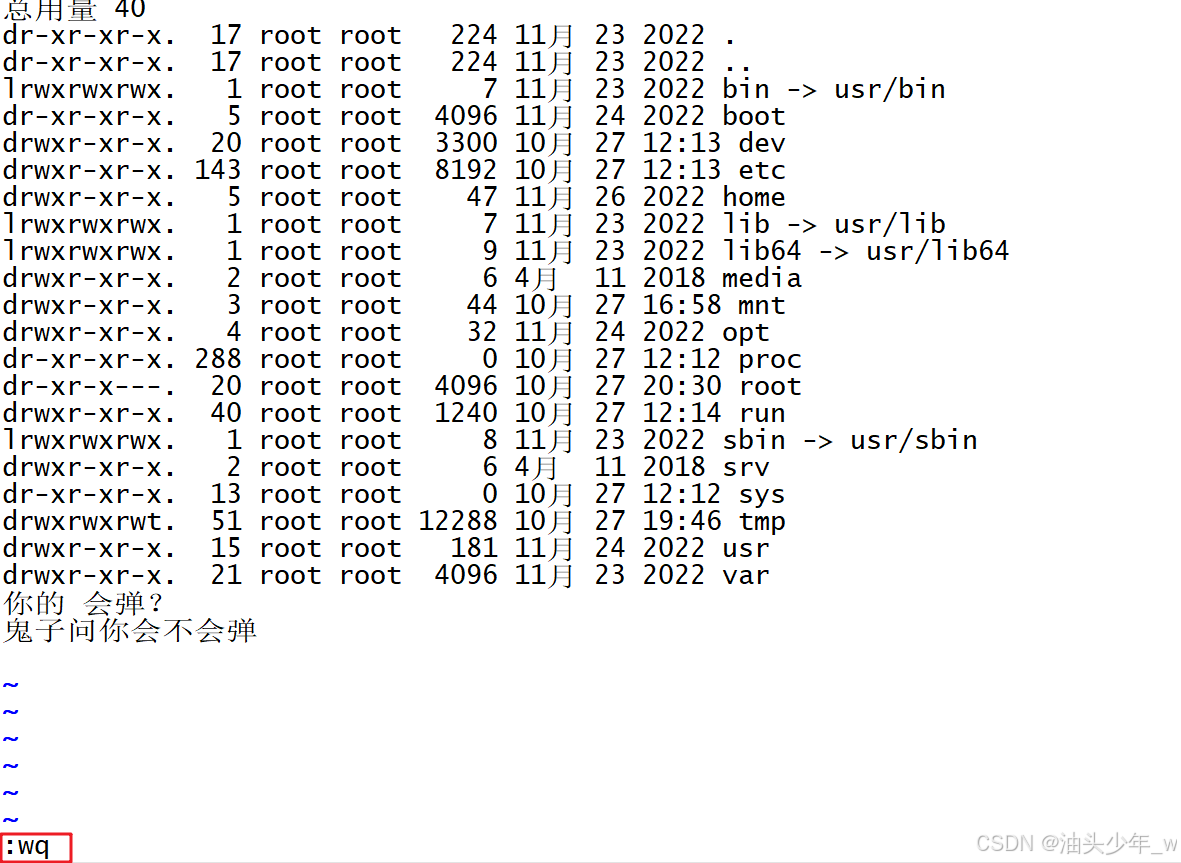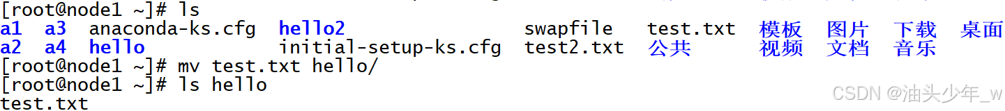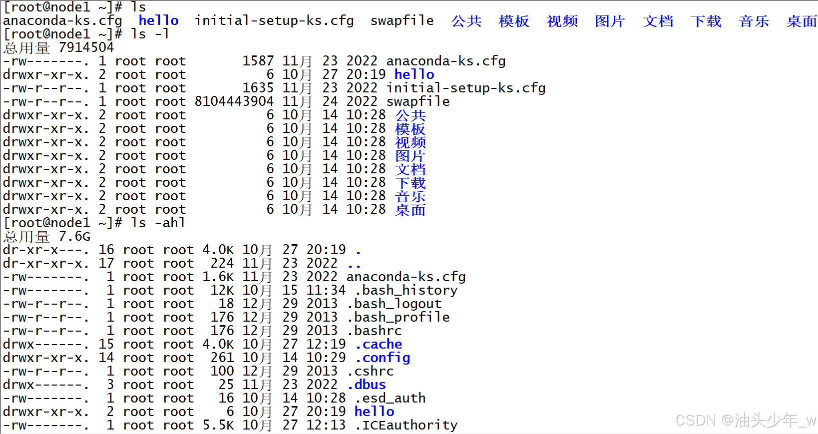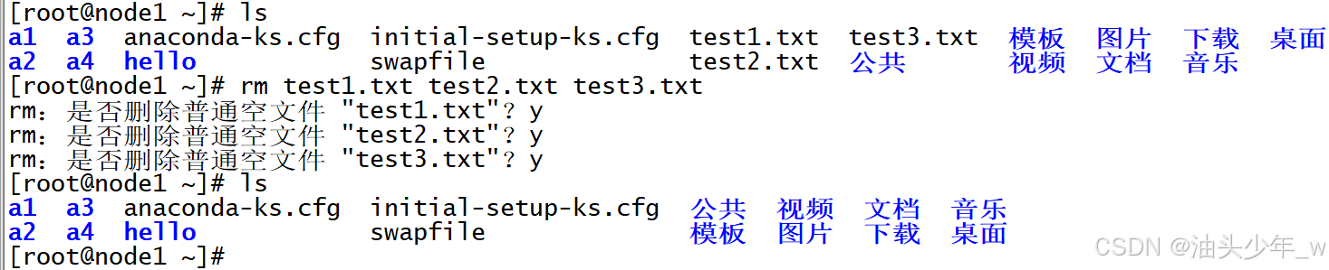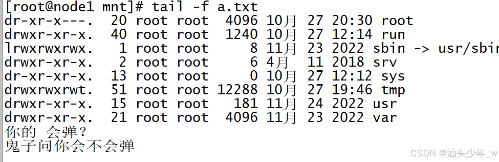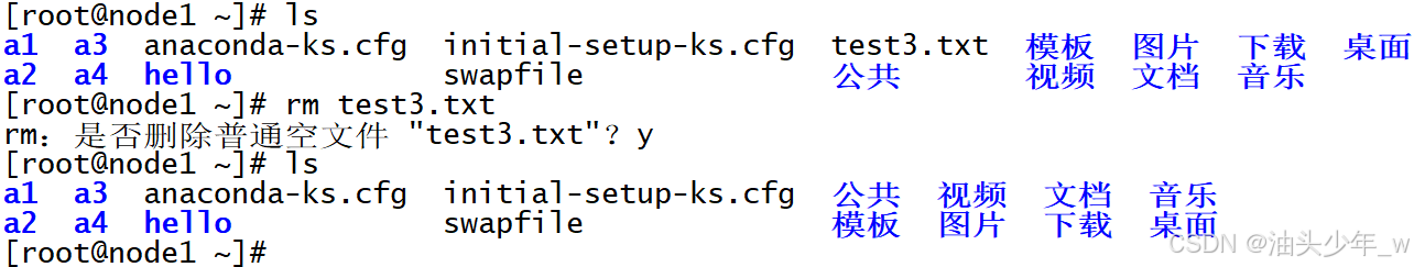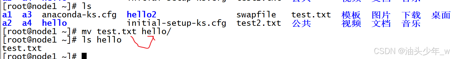 touch a.txt : 创建一个a.txt文本文件 touch b.txt c.txt : 创建b.txt文本文件和c.txt文件 扩展: ls -al / > a.txt 将>前面的命令产生的结果当做文本写入到a.txt文件内. cat a.txt : 查看文件所有内容 more a.txt : 分页查看文件的内容.(按q退出、按空格下一页、按b返回)