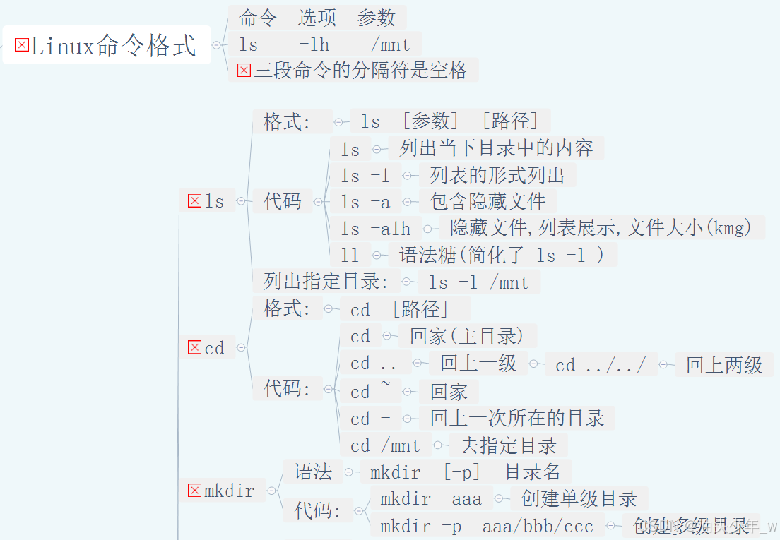 无论是什么命令,用于什么用途,在Linux中,命令有其通用的格式: command [-options] [parameter] 解释: command: 命令本身 -options:[可选,非必填]命令的一些选项,可以通过选项控制命令的行为细节 parameter:[可选,非必填]命令的参数,多数用于命令的指向目标等 语法中的[],表示可选的意思