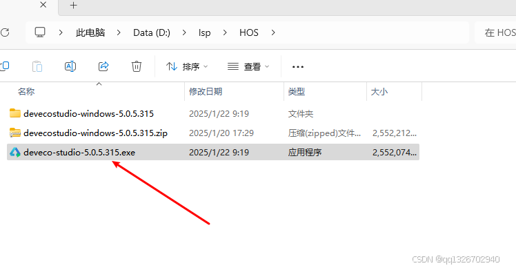 解压出文件deveco-studio-5.0.5.315.exe,双击运行,提示需要管理员权限时,点击是