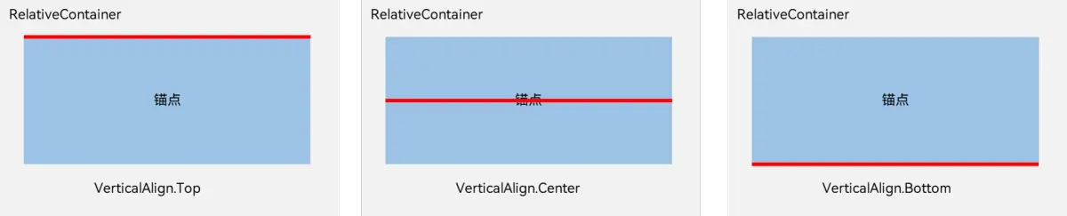 在竖直方向上,对齐位置可以设置为VerticalAlign.Top、VerticalAlign.Center、VerticalAlign.Bottom。