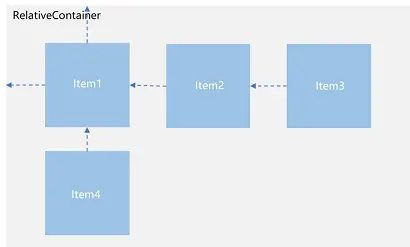 RelativeContainer为采用相对布局的容器,支持容器内部的子元素设置相对位置关系,适用于界面复杂场景的情况,对多个子组件进行对齐和排列。子元素支持指定兄弟元素作为锚点,也支持指定父容器作为锚点,基于锚点做相对位置布局。下图是一个RelativeContainer的概念图,图中的虚线表示位置的依赖关系。