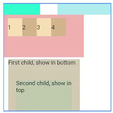 Text('First child, show in bottom').width('90%').height('100%').backgroundColor(0xd2cab3).align(Alignment.Top)