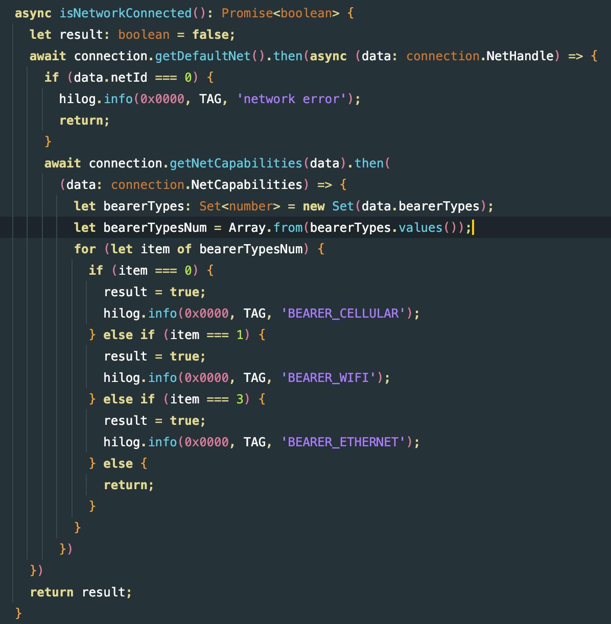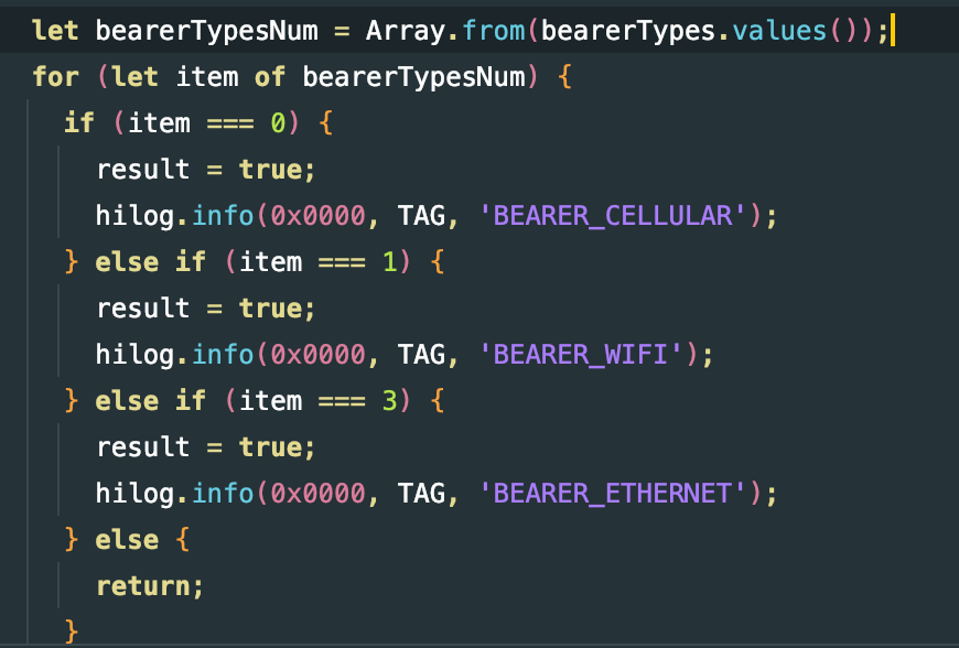 其中我们需要的是.then得到的形参参数名.bearerTypes,该参数会获得你当前网络的类型下标