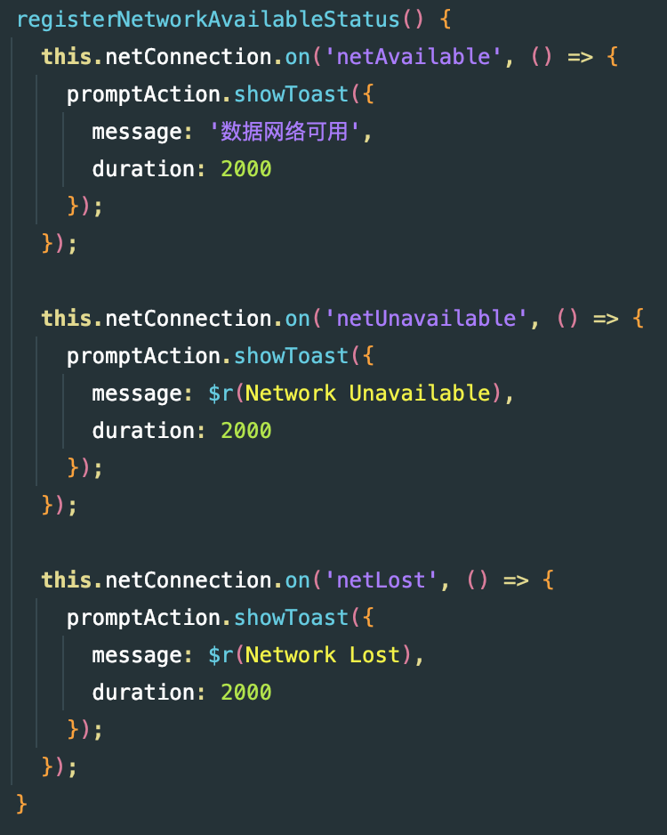 该自定义方法一般用在组件内,例如:在登陆时判断网络情况,给用户网络反馈