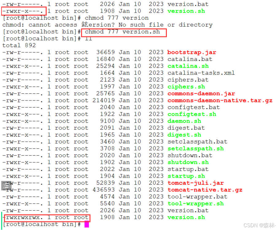 # 输出:-rwxr-x---. 1 root root 1908 Jan 10 2023 version.sh
