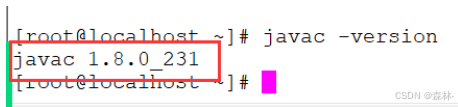 javac -version,输出javac 1.8.0_231表示配置成功。