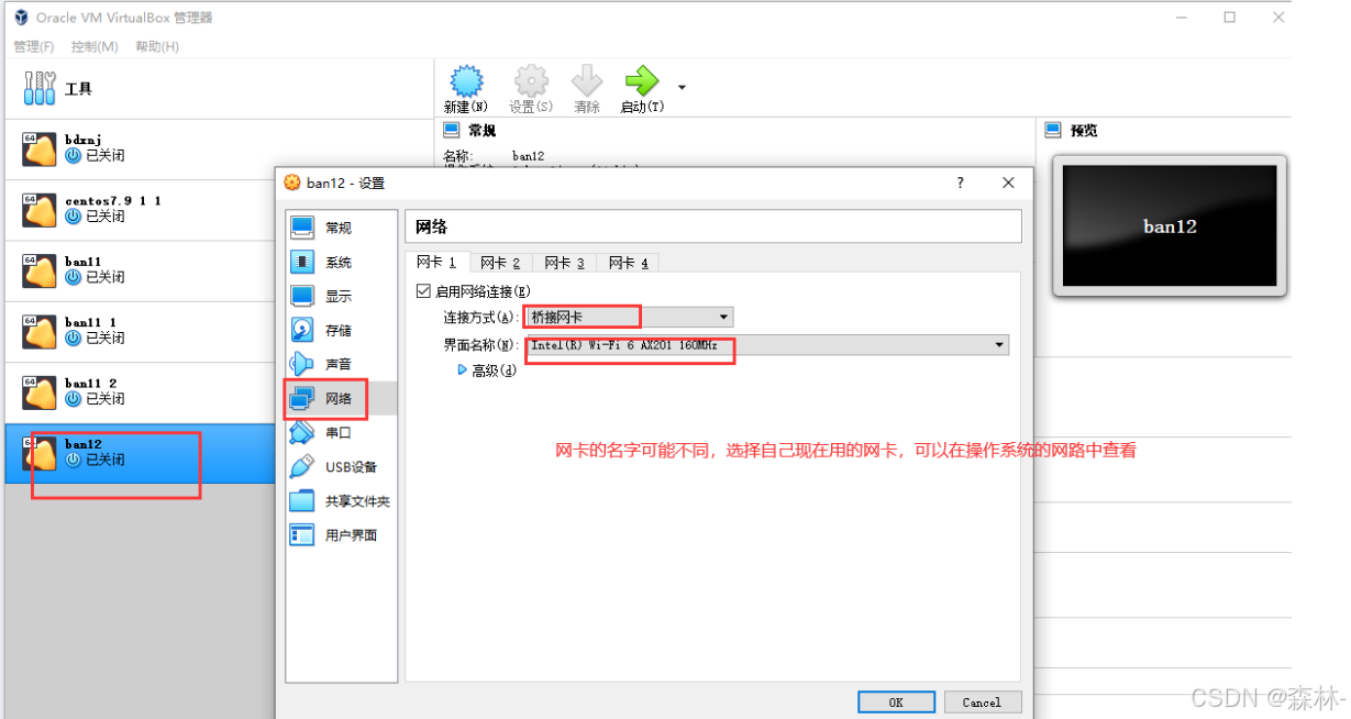 - 连接方式:选择 “桥接网卡”(让虚拟机和主机在同一网段,方便远程连接);